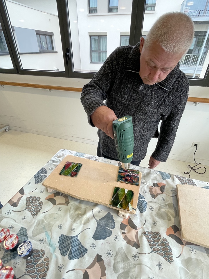 🎨 Le 13 novembre, place à la pratique : les résidents ont pu s’initier à la peinture sur verre. Guidés par les Amis Verriers, chacun a laissé libre cours à son imagination entre rires, concentration et émerveillement. Tous sont repartis avec une création colorée dont ils étaient très fiers !