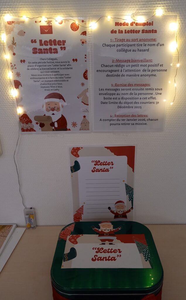 âš Au Foyer de Vie dâAvenel, pour clĂŽturer lâannĂ©e 2025 sur une note joyeuse et bienveillante đđ«, les deux rĂ©fĂ©rentes du groupe « Ăthique et Bientraitance » ont eu la belle initiative dâorganiser une « Letter Santa » đ đ.